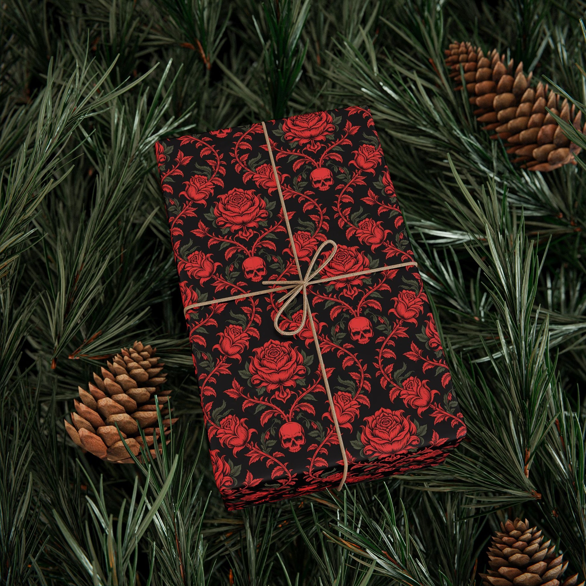 Elegant Floral Skull Wrapping Paper, Gift Wrap for Weddings, Birthdays, Holidays, Celebrations, Special Occasions, Party Supplies
