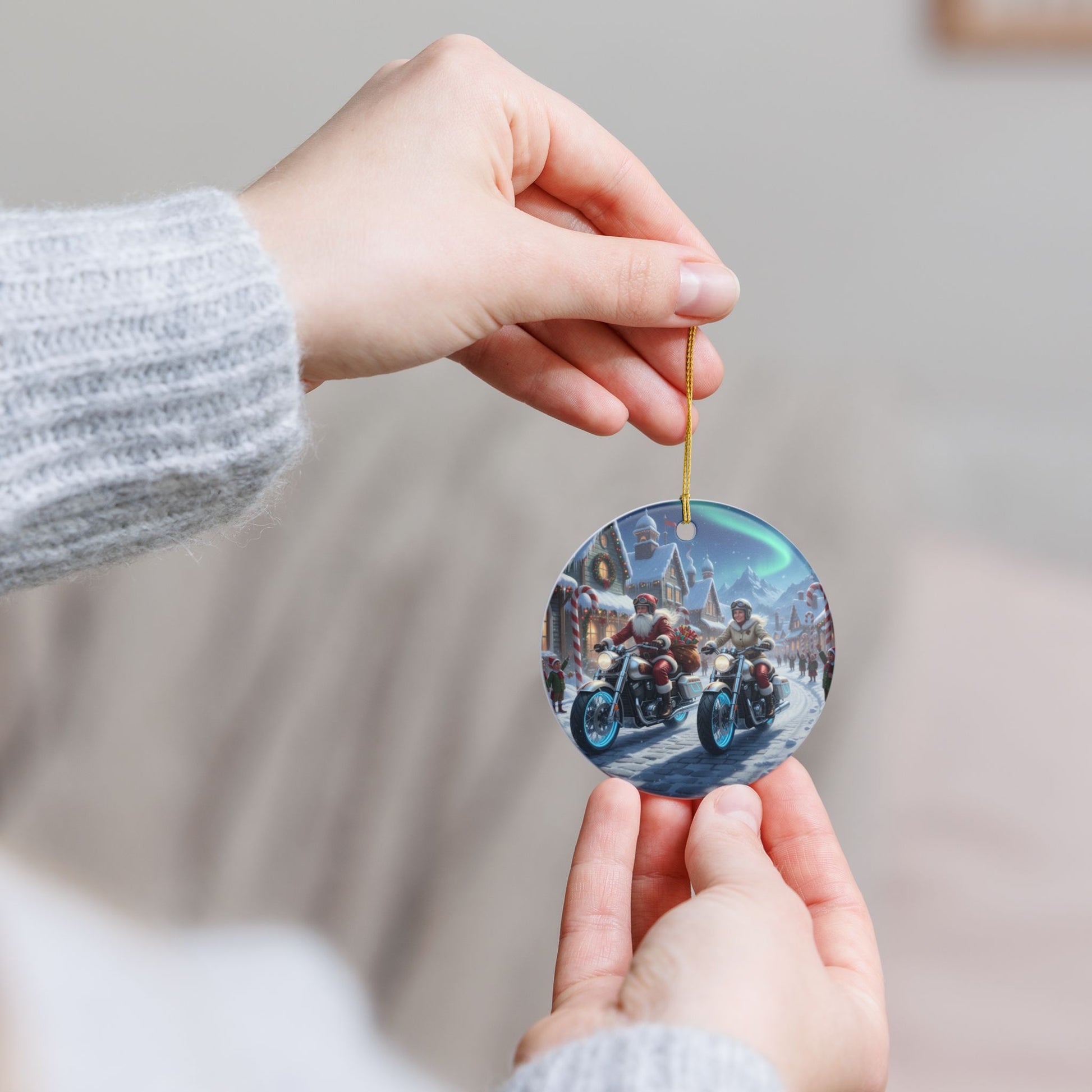 Festive Ceramic Holiday Ornament, Christmas Decoration, Unique Gift, Holiday Decor, Santa Biker Design, Winter Season Keepsake