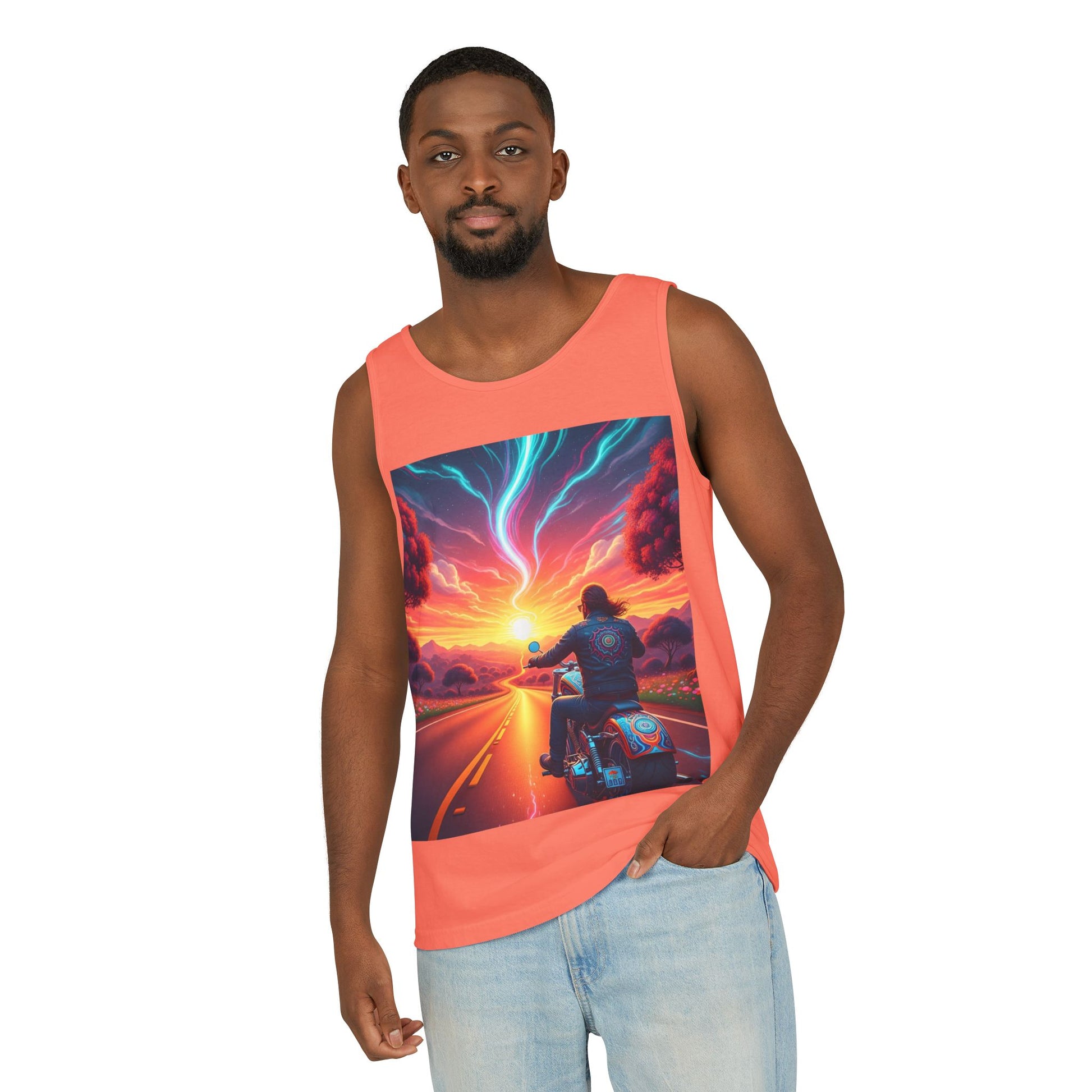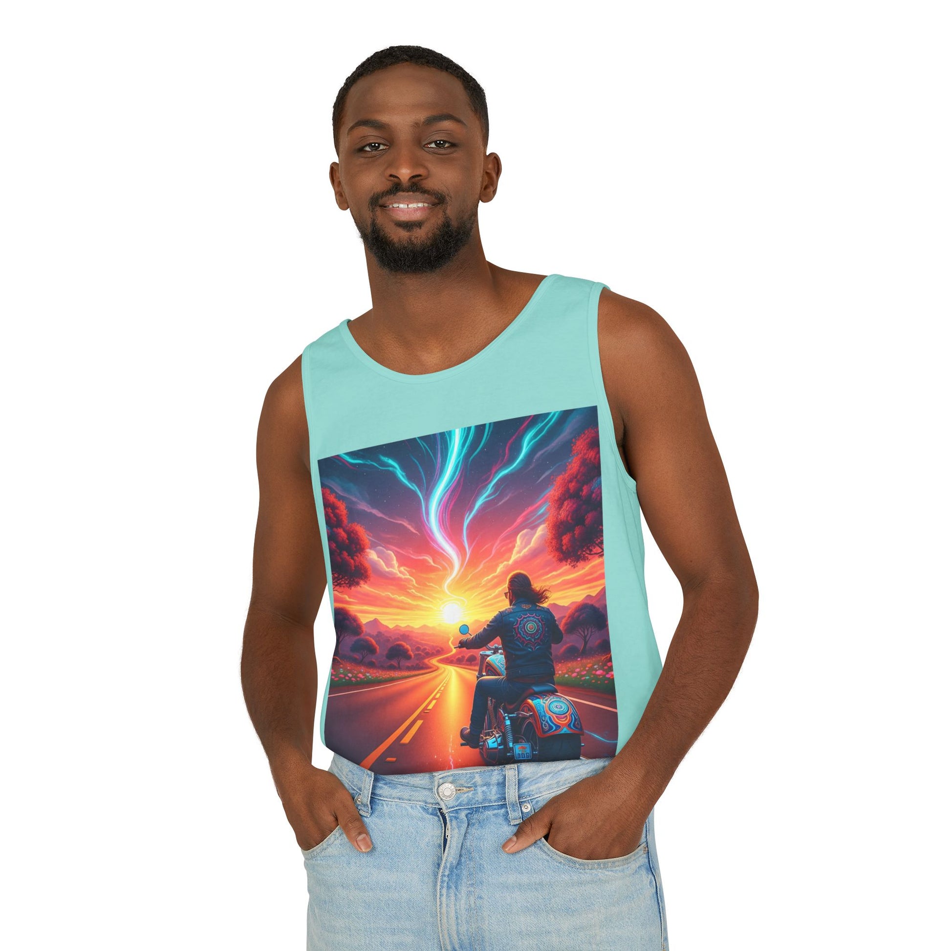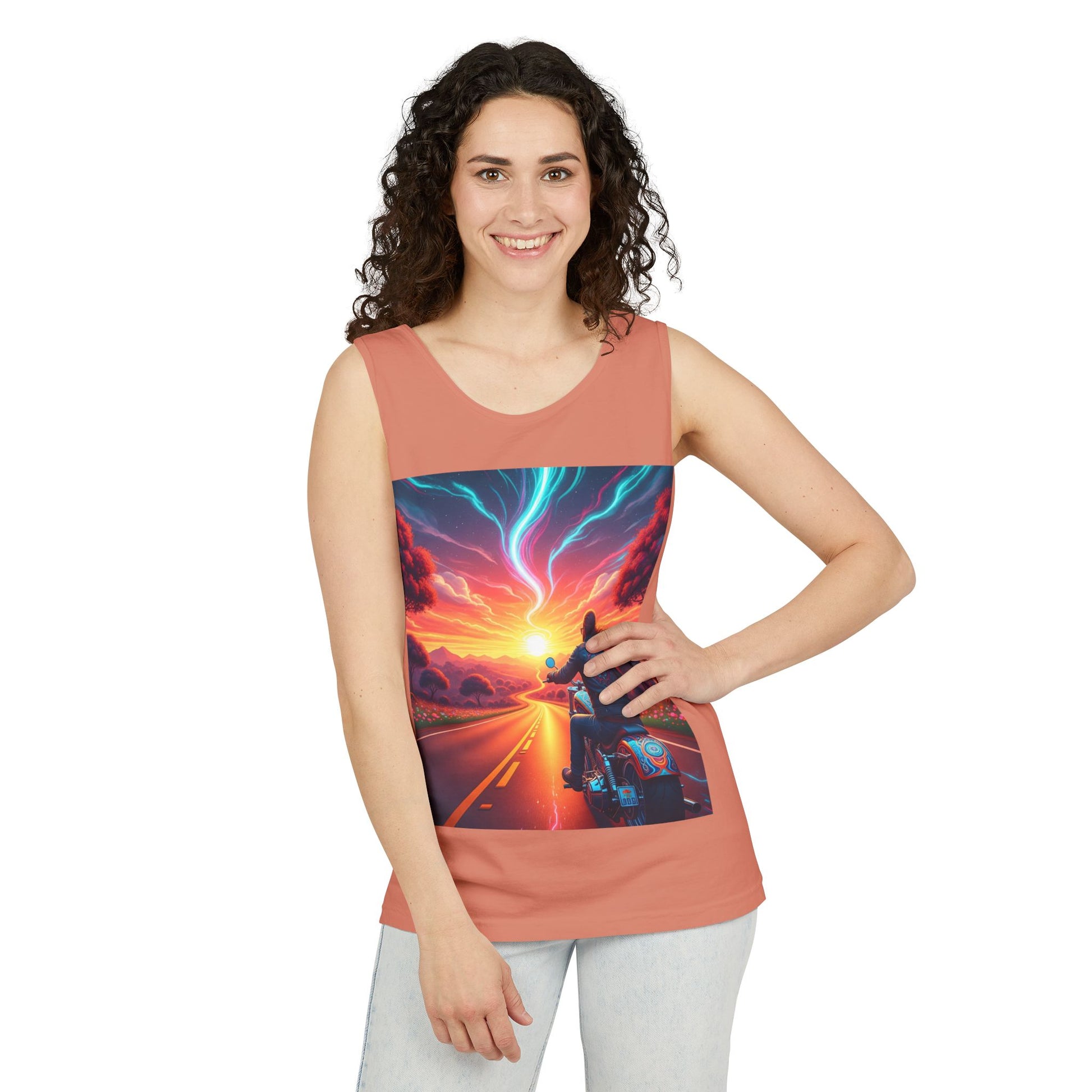 Motorcycle Adventure Tank Top, Unisex Summer Apparel, Gifts for Bikers, Casual Wear for Outdoor Events, Festival Outfit, Road Trip Gear