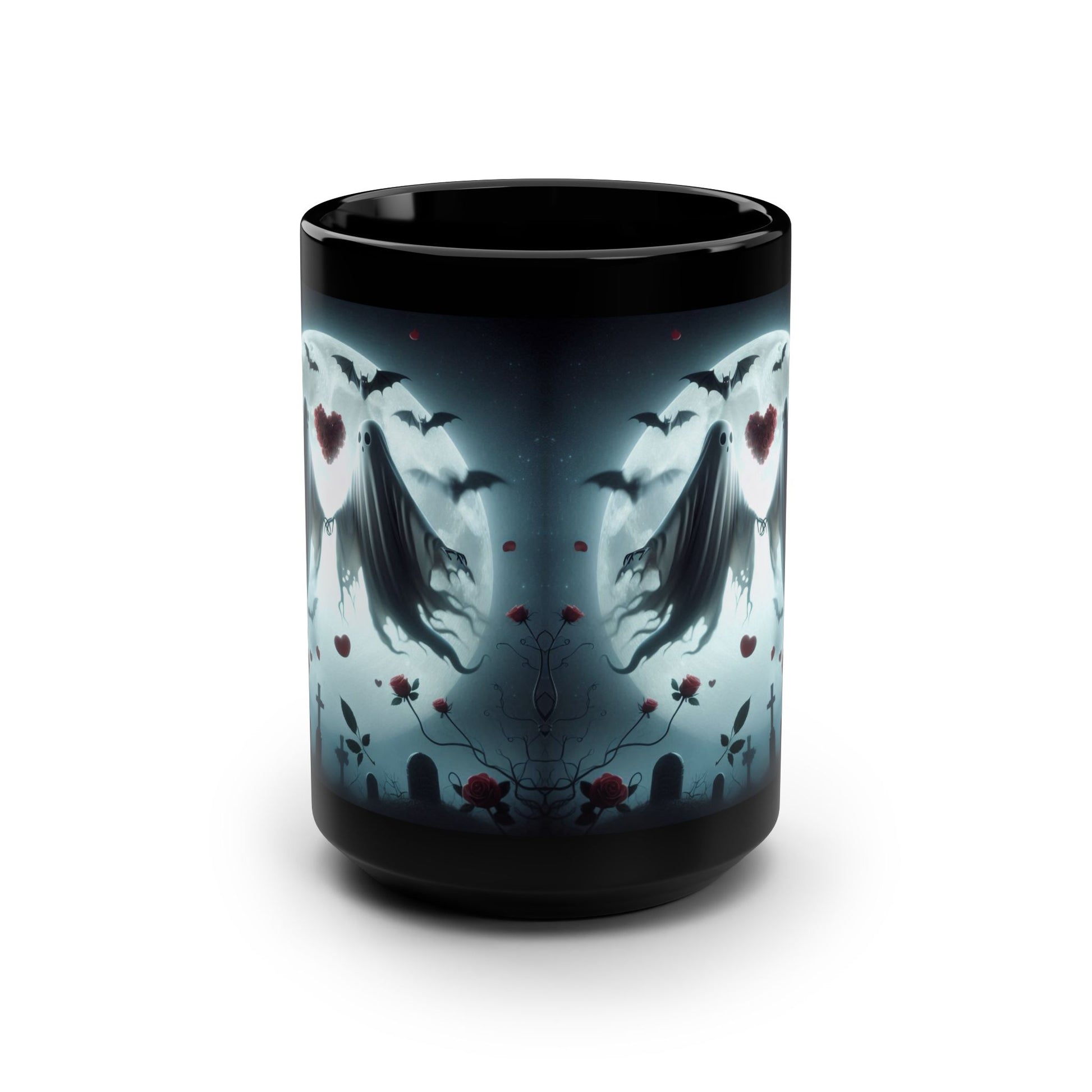 Ideal for Halloween and Valentine's Day celebrations, this 15oz black ceramic mug with a glossy finish is microwave and dishwasher safe, making it a convenient and stylish addition to your drinkware collection.