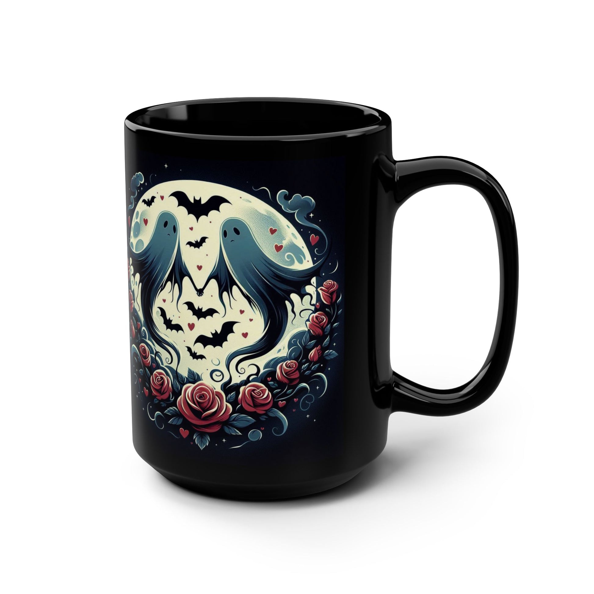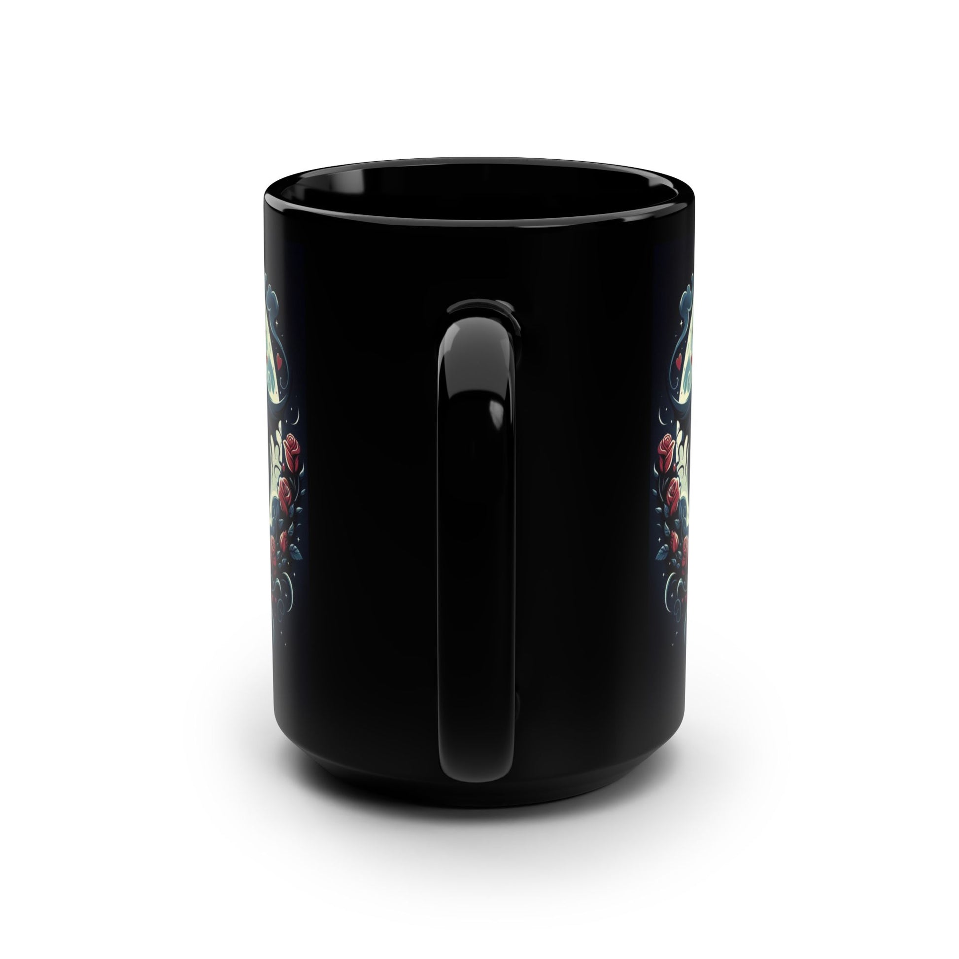 Ideal for Halloween and Valentine's Day celebrations, this 15oz black ceramic mug with a glossy finish is microwave and dishwasher safe, making it a convenient and stylish addition to your drinkware collection.