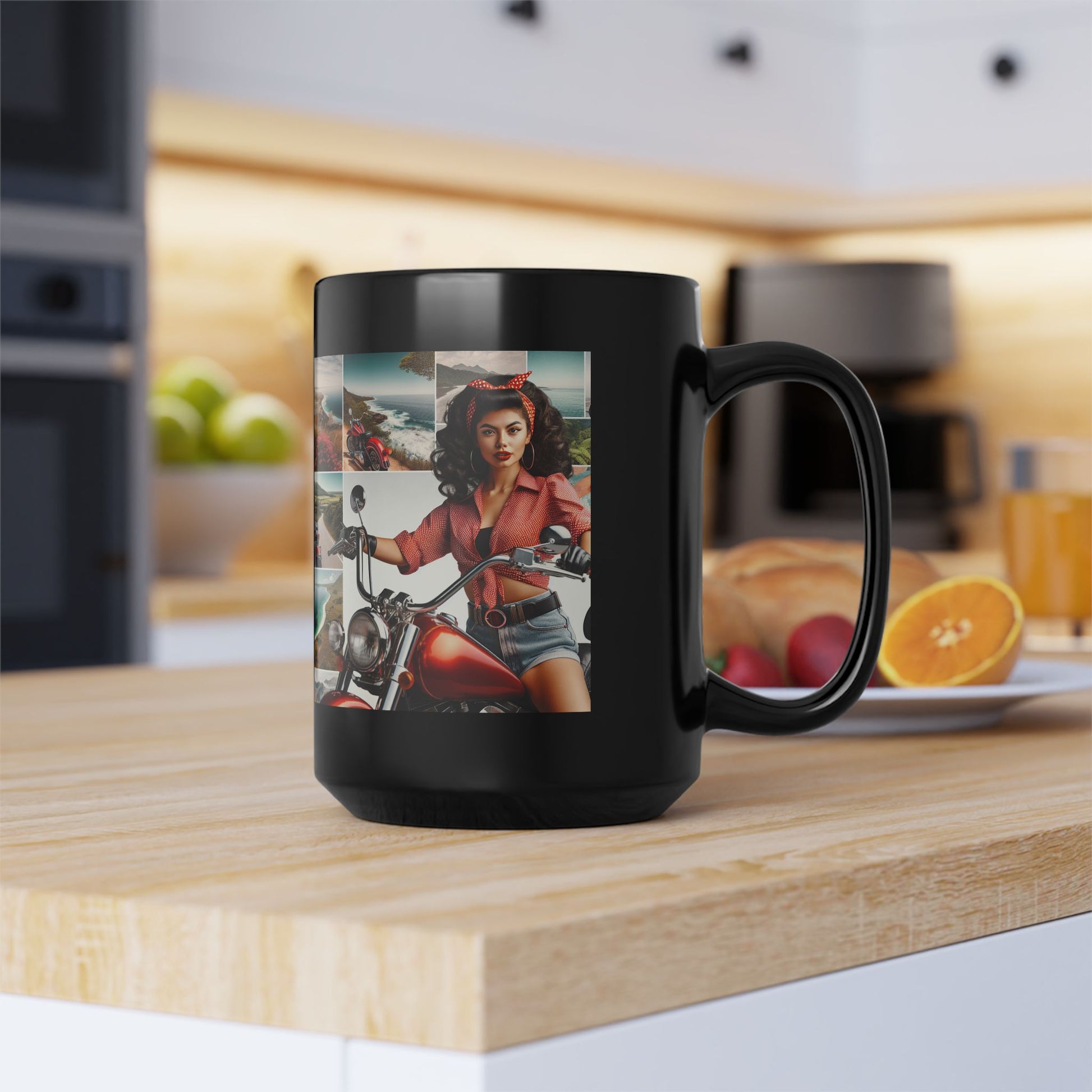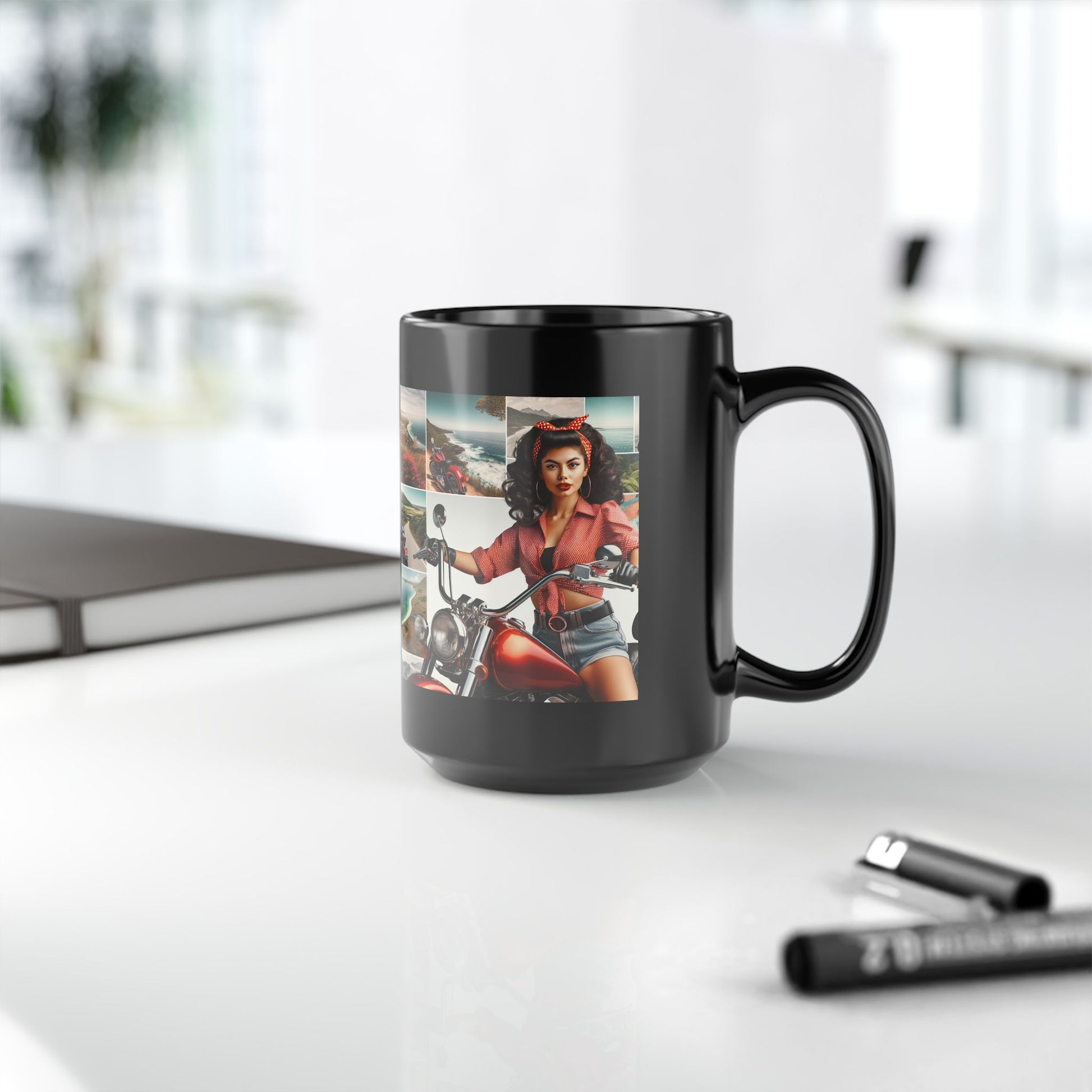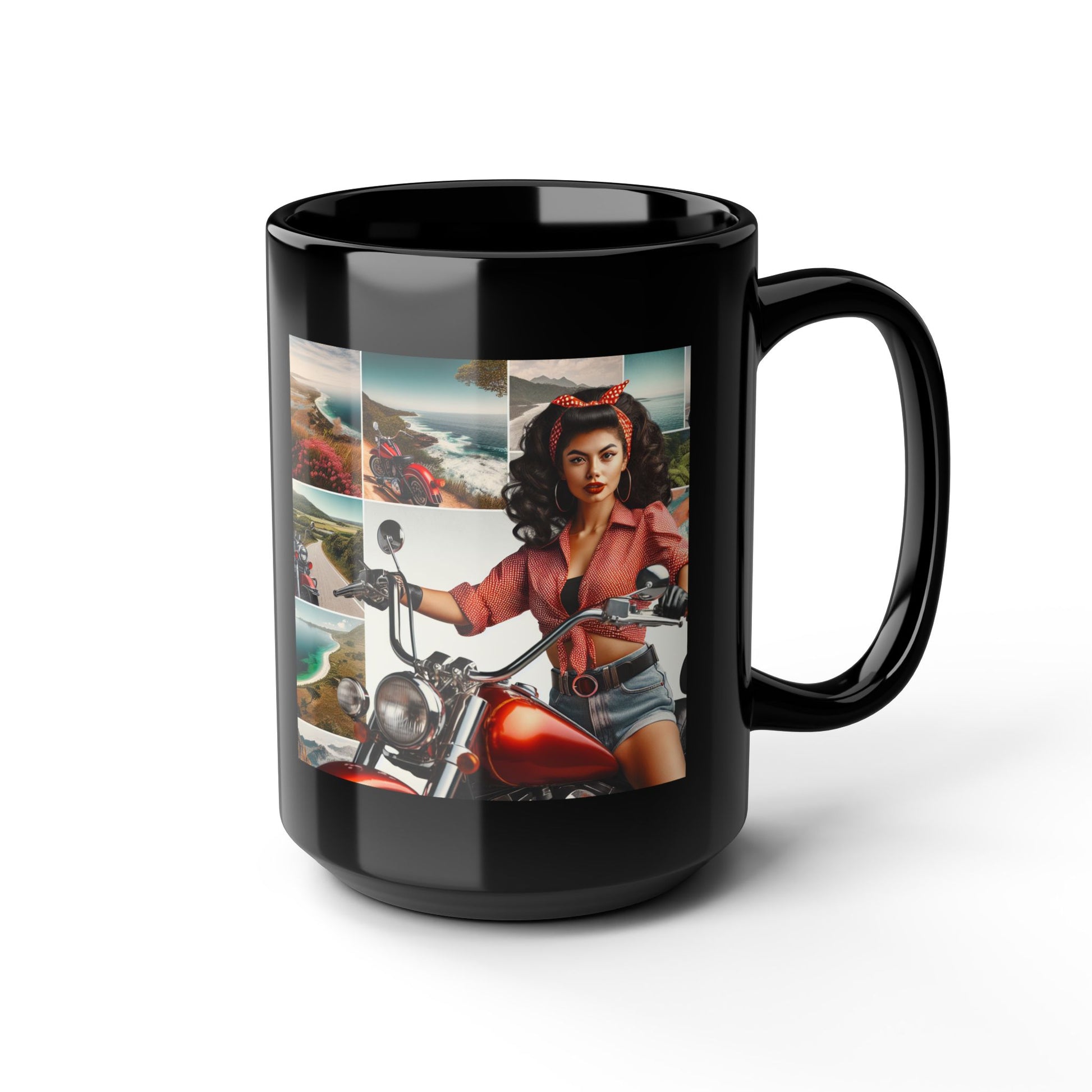 Escape to the open roads with every sip from our Pin-up Biker Mug.