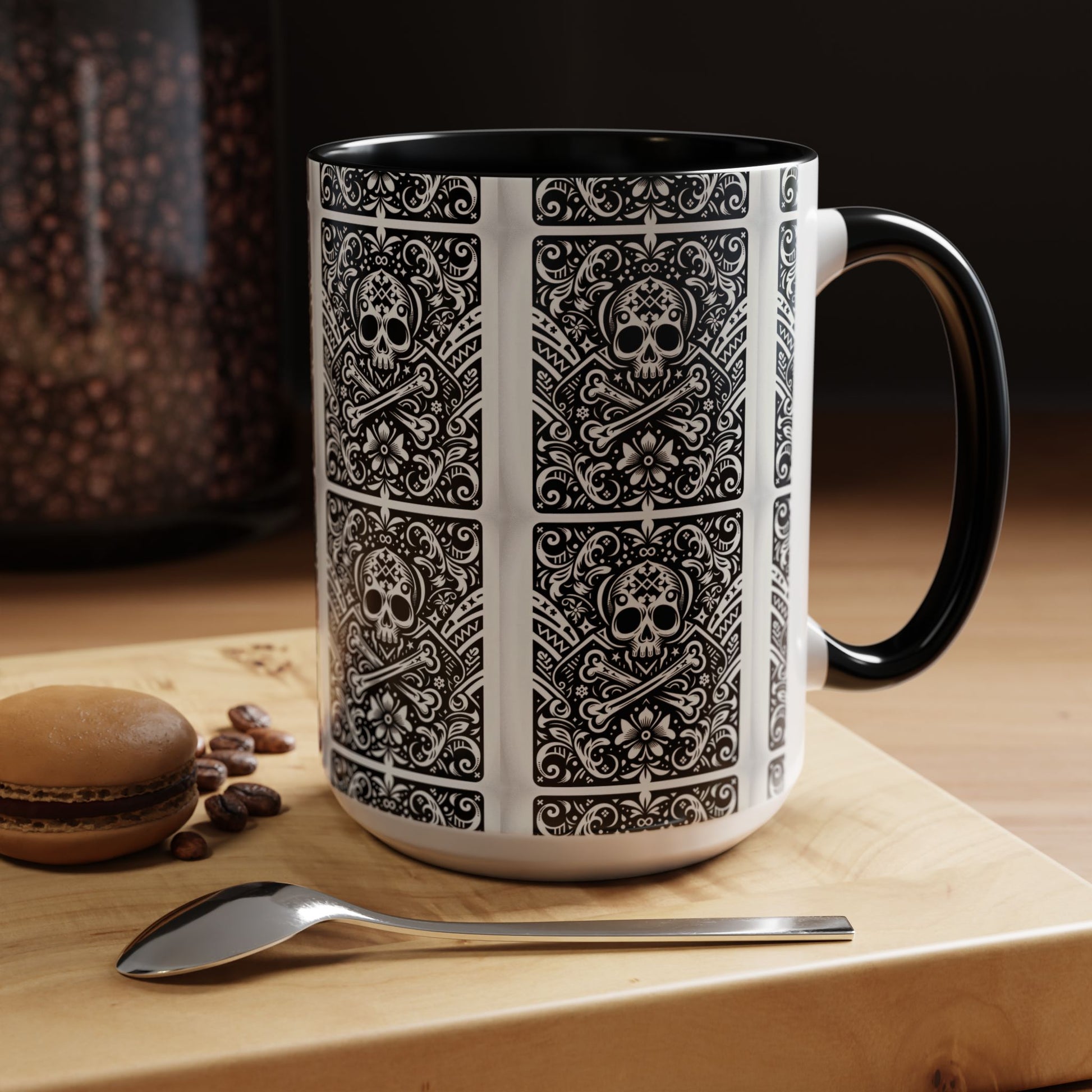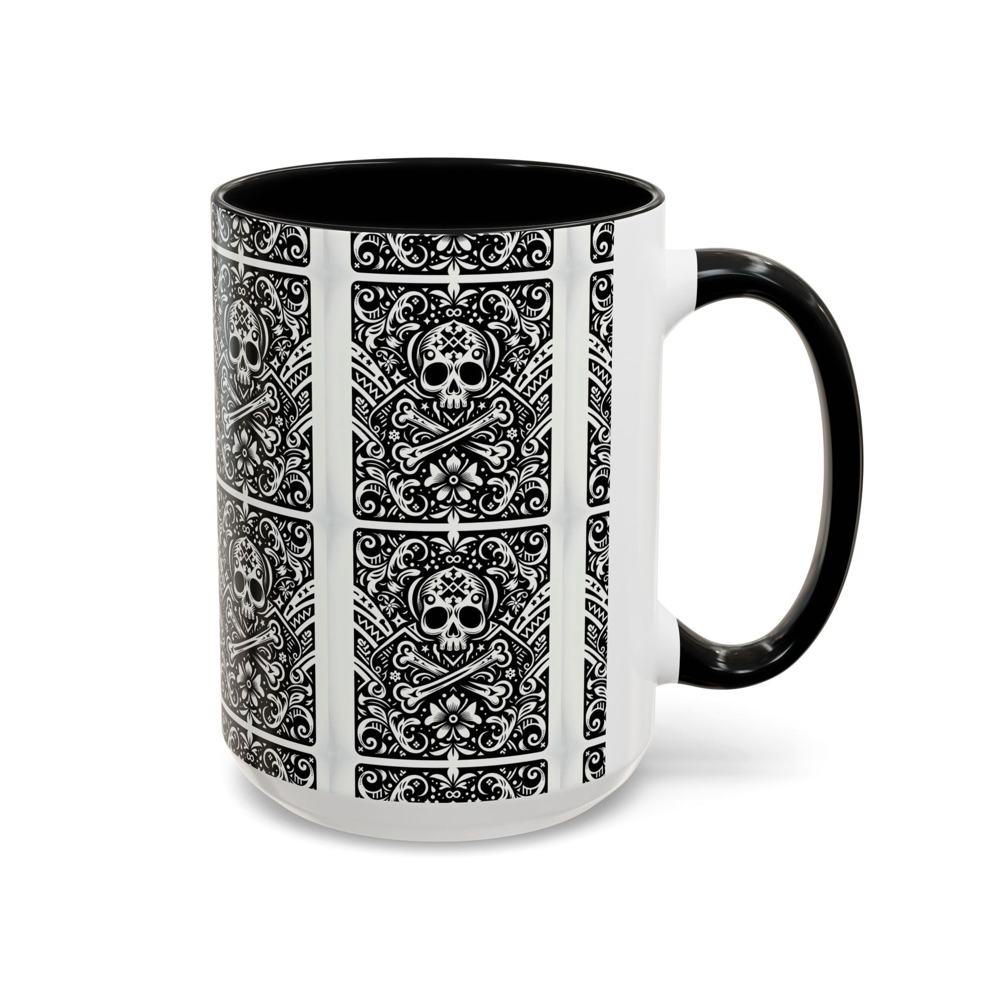 This mug features a cool skull and crossbones pattern, it reminds me of playing card decks.