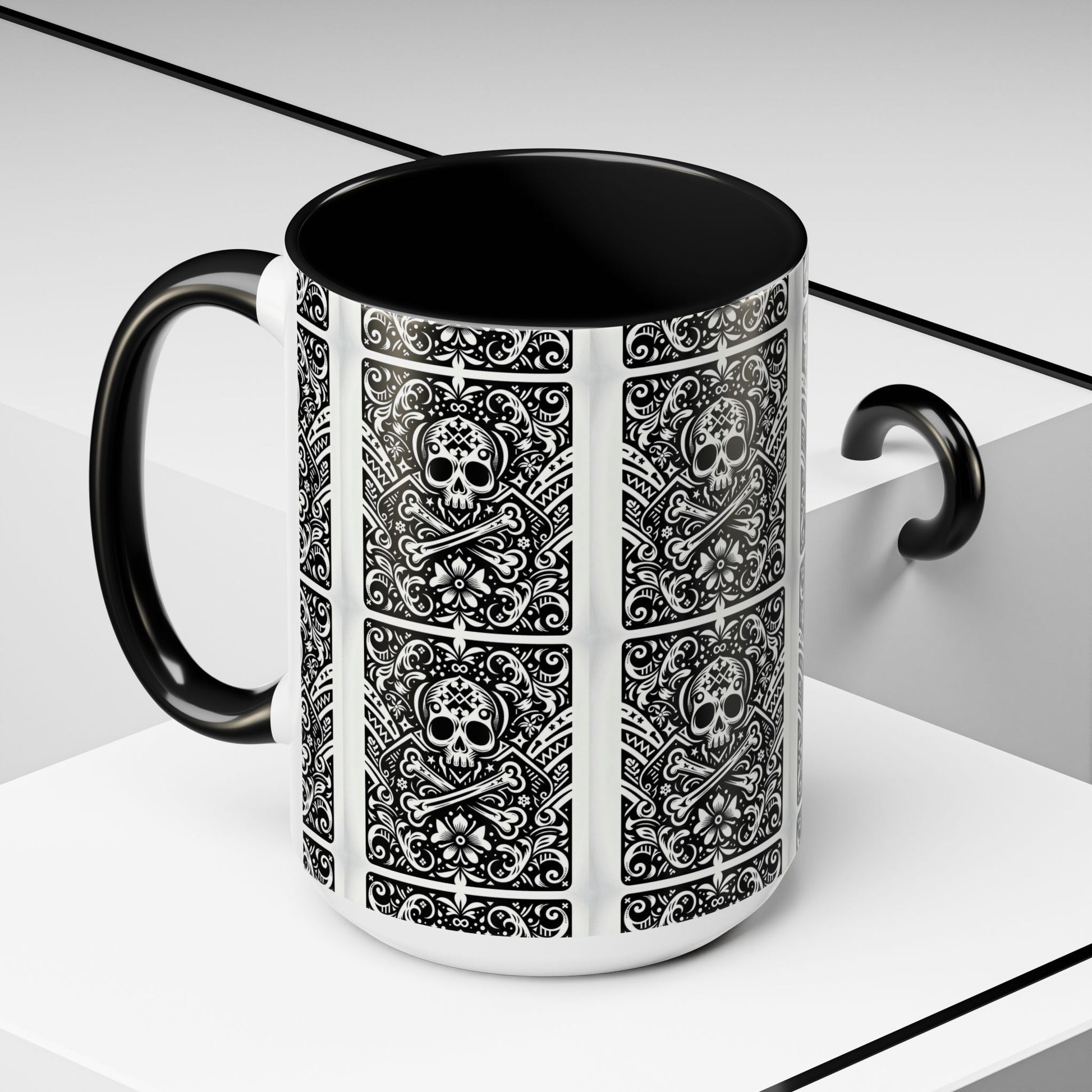 Mug -Skull and Crossbones Coffee Cup 15oz-Playing Card Pattern