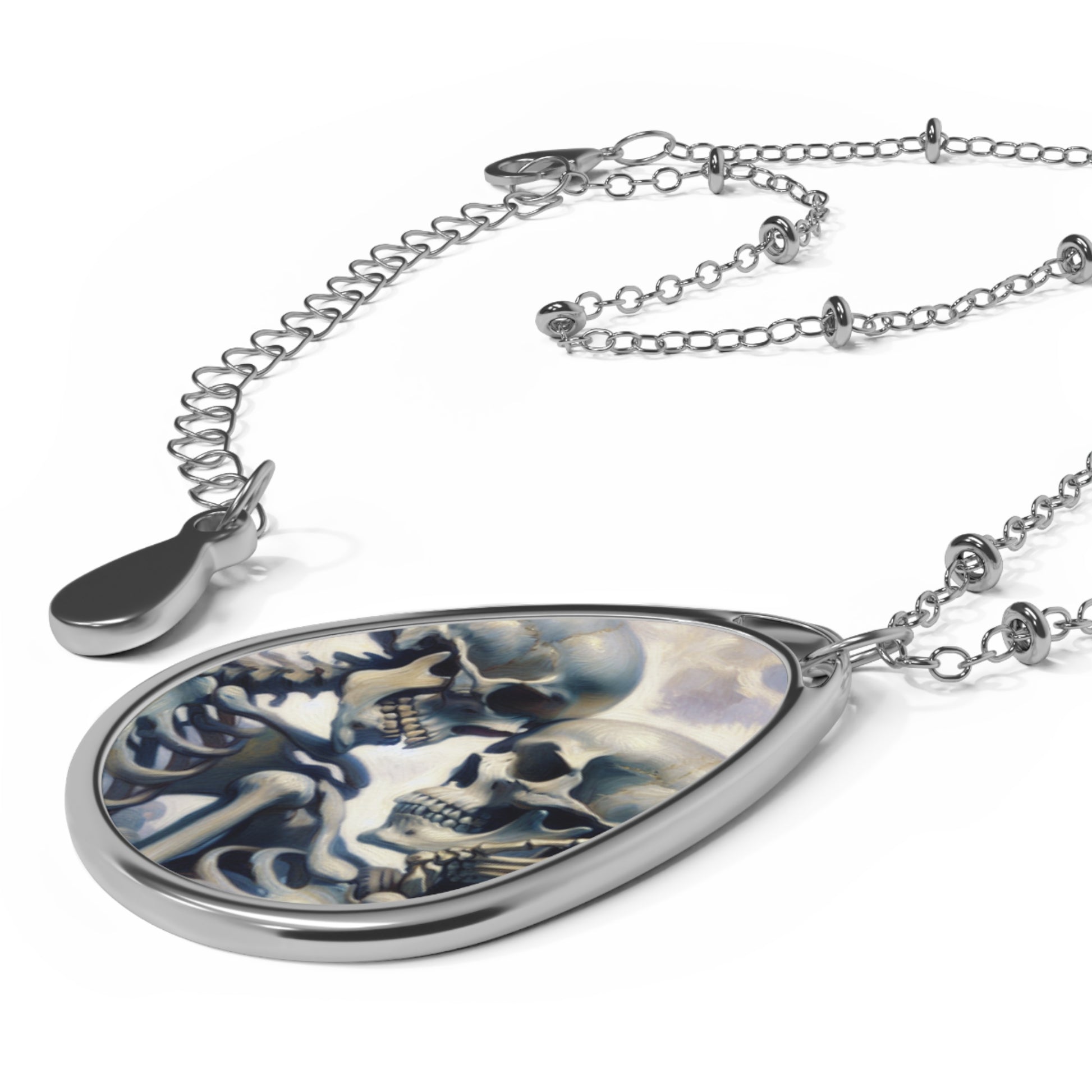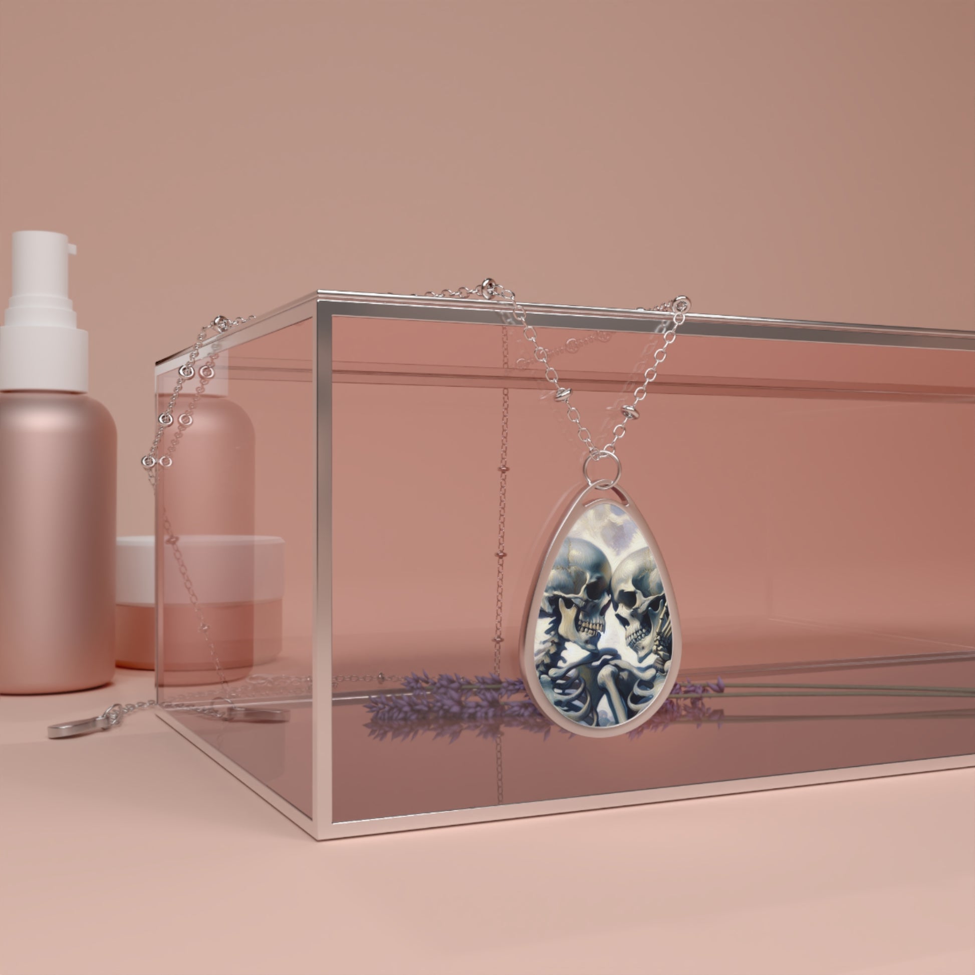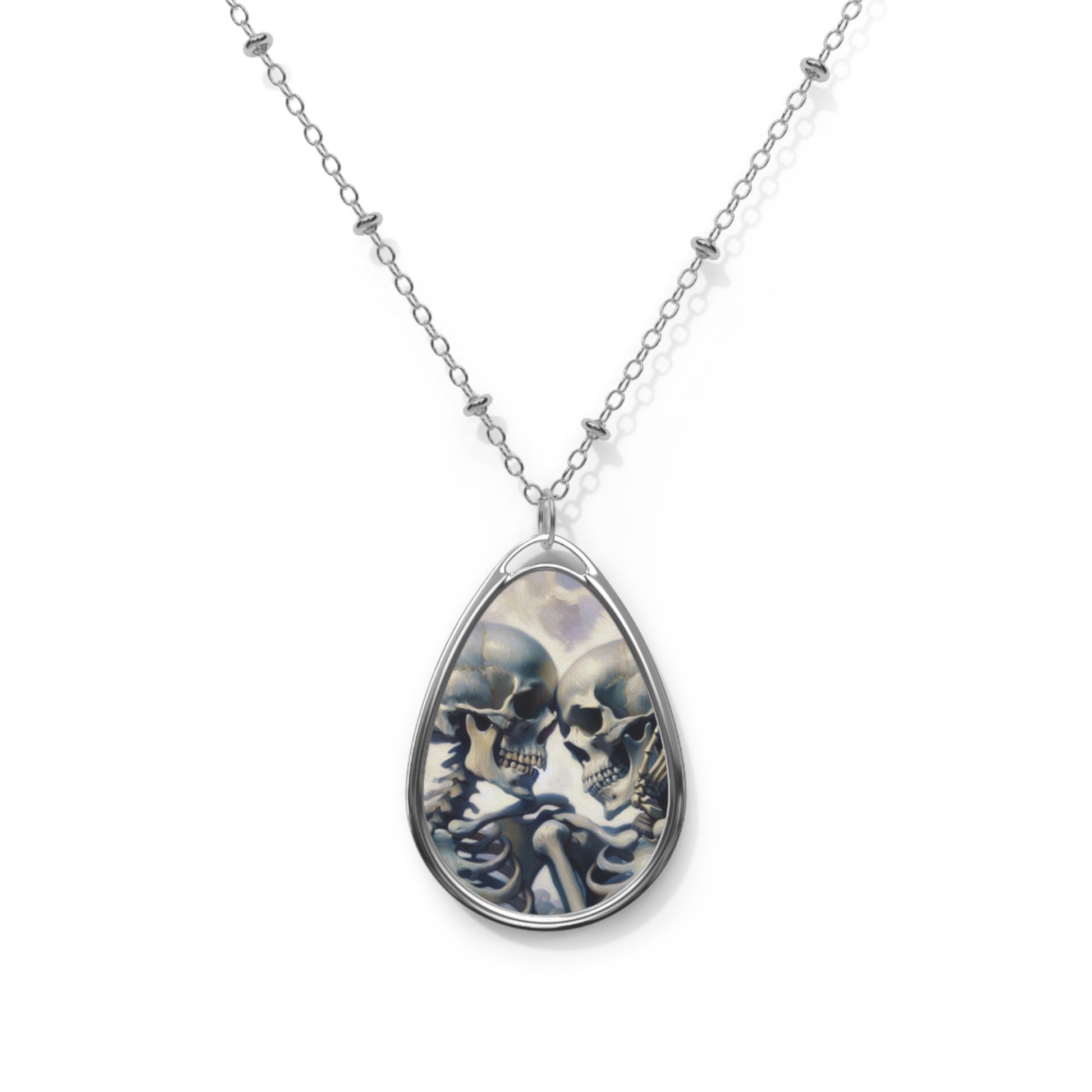 Romantic Skeleton Love Oval Necklace | Gothic Jewelry, Unique Pendant, Spooky Gift, Dark Aesthetic, Halloween Accessory