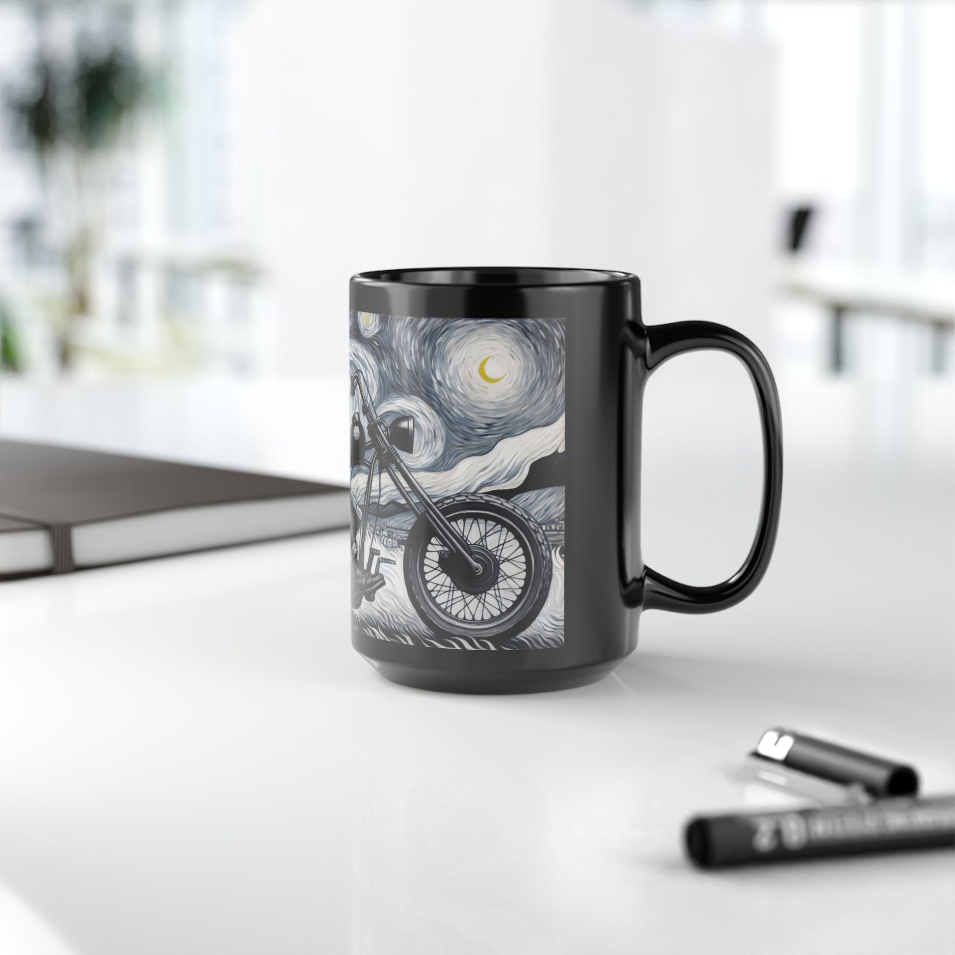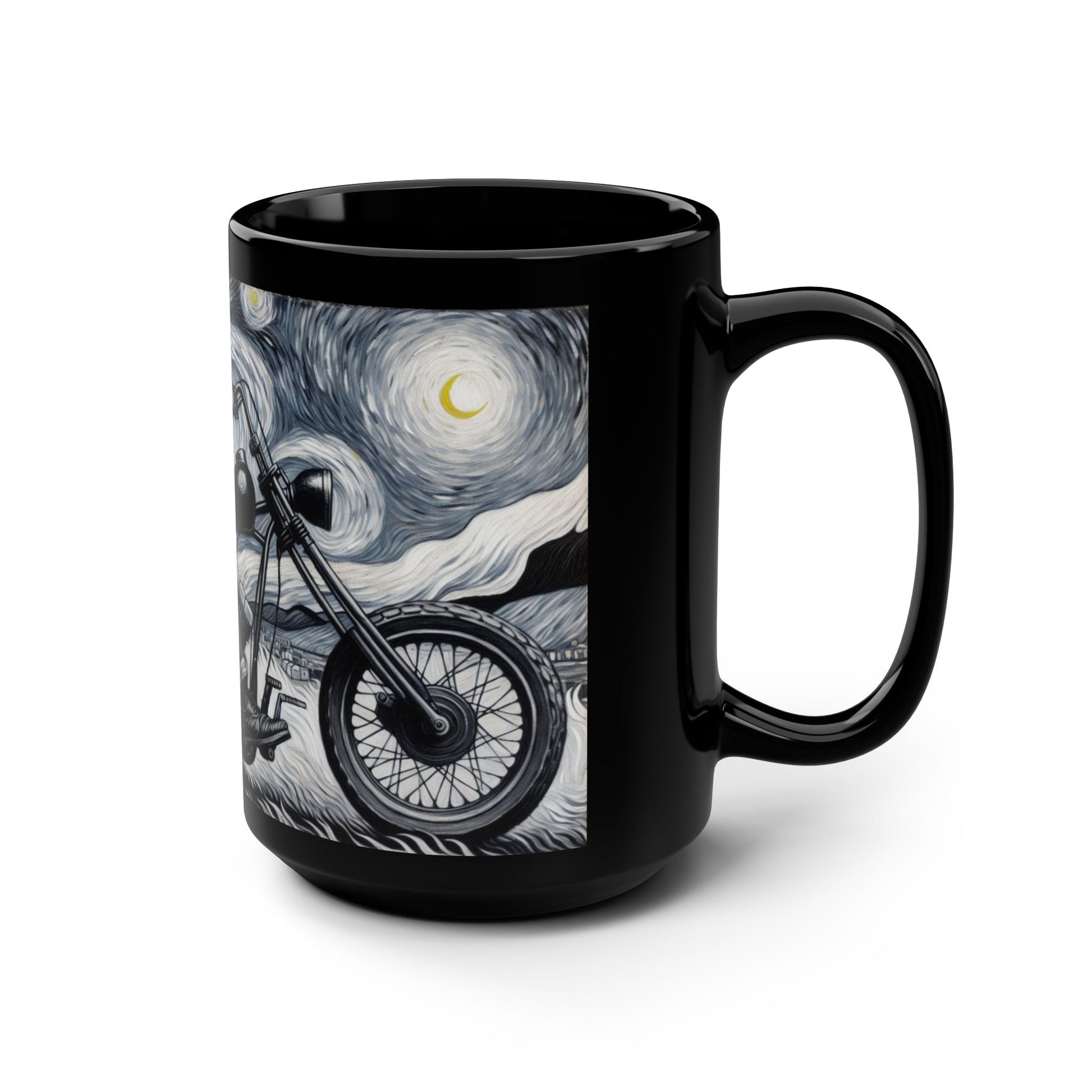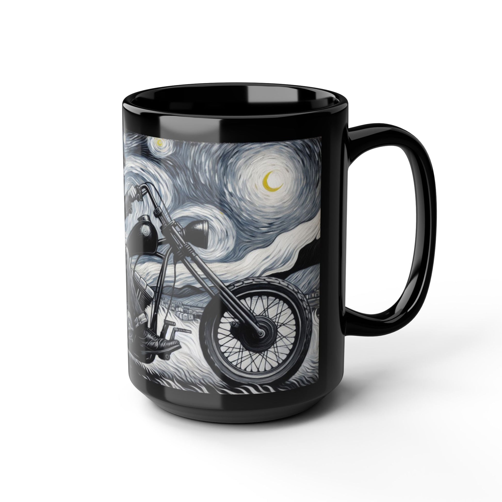 Starry Night Motorcycle Black Mug - 15oz Ceramic Coffee Cup for Bikers & Art Lovers