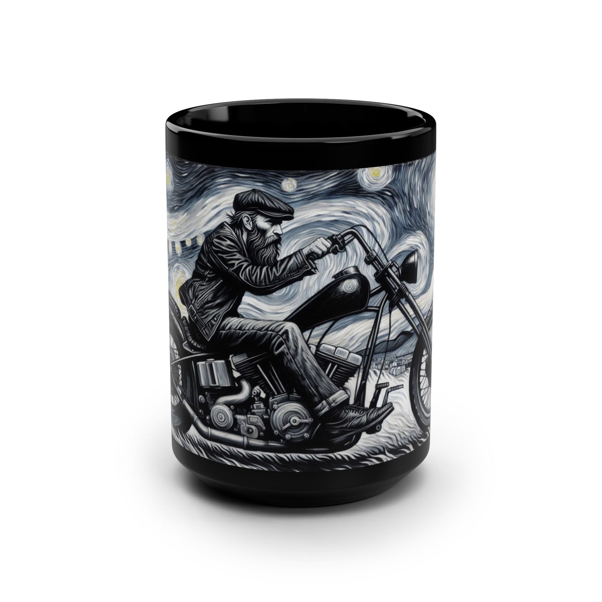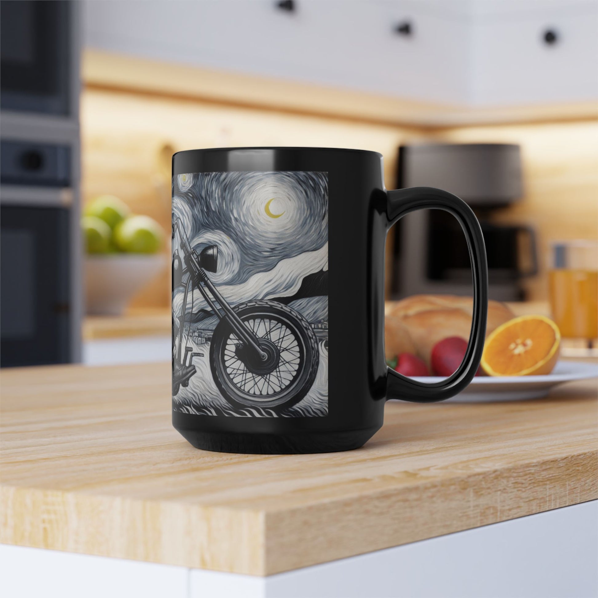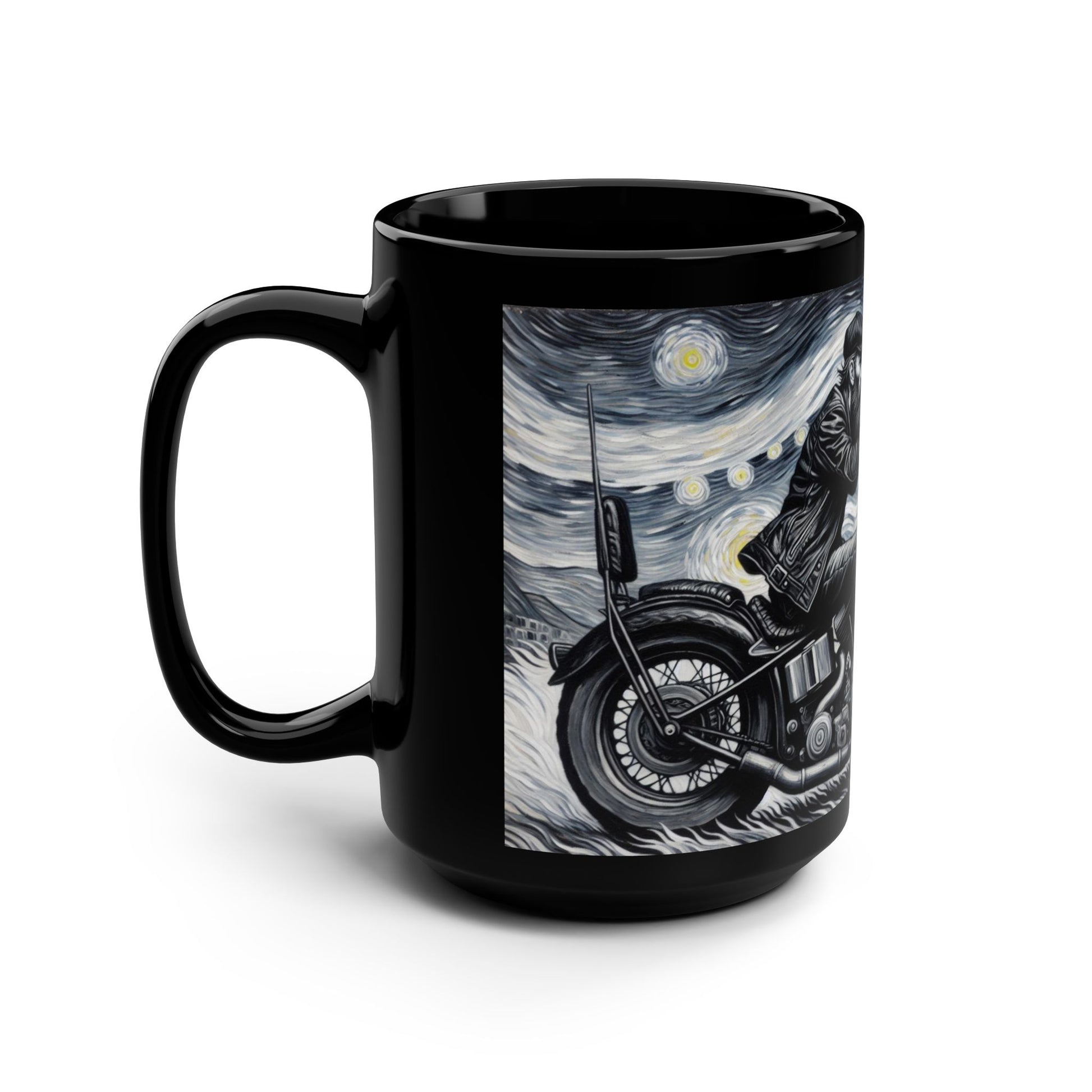 Starry Night Motorcycle Black Mug - 15oz Ceramic Coffee Cup for Bikers & Art Lovers